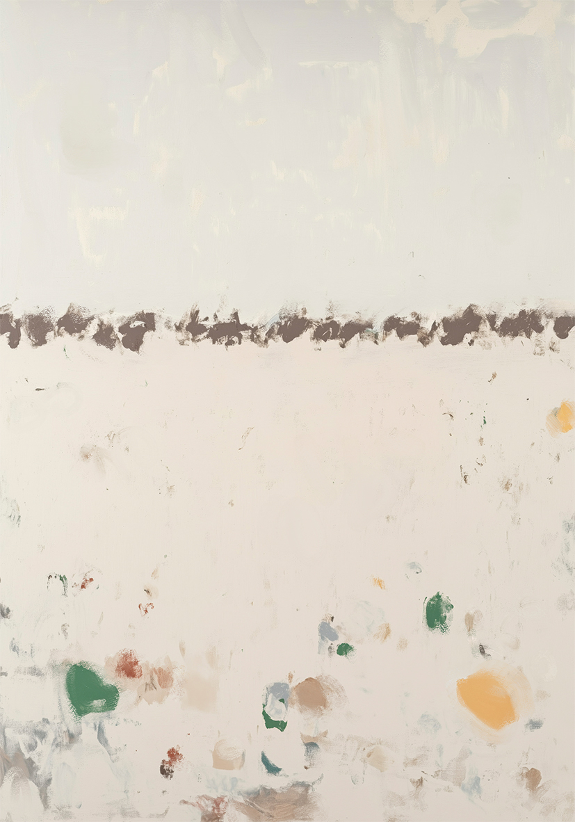 Pintura abstracta minimalista con texturas terrosas y tonos neutros suaves en formato horizontal. Perfecta para interiores modernos y ambientes serenos.