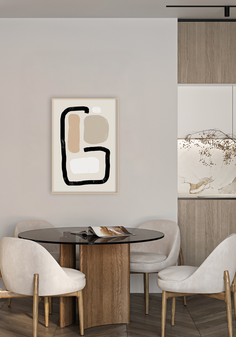 Obra abstracta contemporánea con formas geométricas en tonos suaves de beige, gris, negro y blanco, con acabado texturizado. Perfecta para interiores modernos que buscan equilibrio y elegancia.