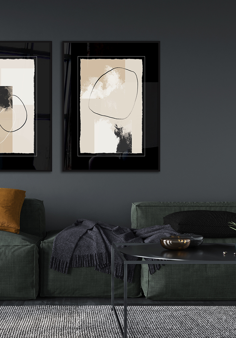 Lámina abstracta minimalista con líneas orgánicas y una paleta cálida en tonos beige. Transmite calma y equilibrio, siendo perfecta para espacios contemporáneos de estilo natural o minimal.