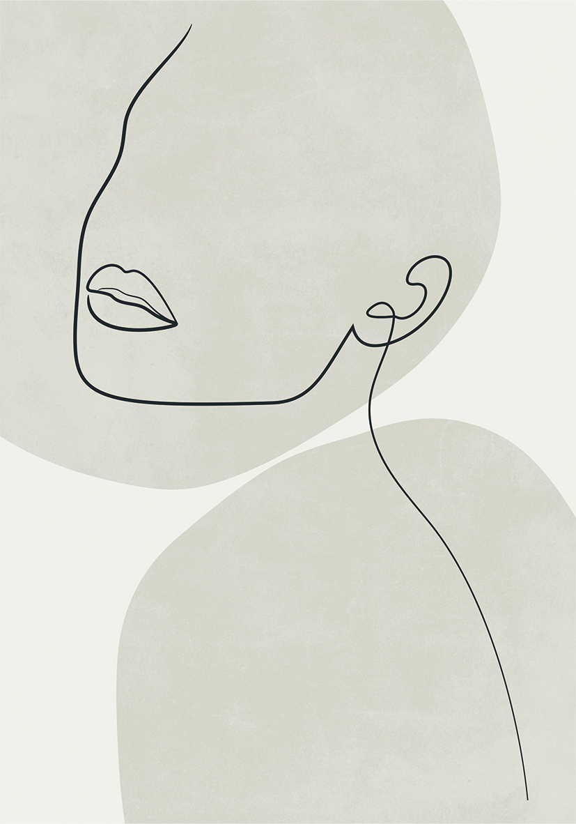 Ilustración abstracta de líneas simples formando un rostro humano sobre fondo neutro. Ideal para decoración moderna y coleccionistas que buscan elegancia visual.