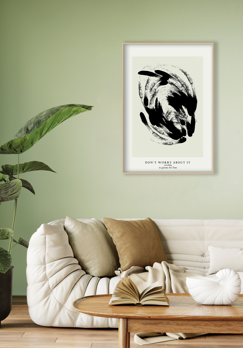 Composición abstracta con dinámicos trazos negros sobre fondo claro, que fusiona estética Zen y estilo moderno. Perfecta para proyectos de diseño minimalista o decoración elegante.