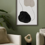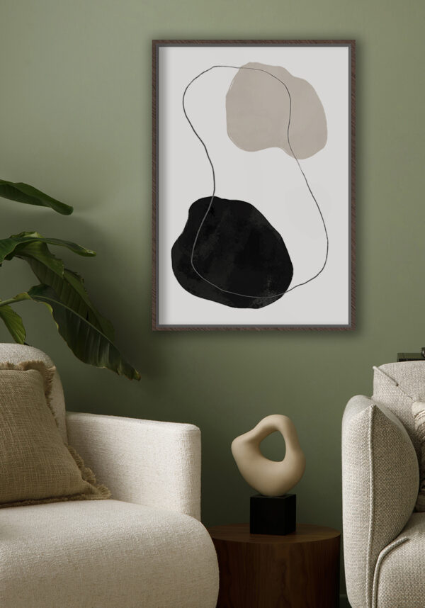 Arte abstracto en tonos negro y beige con un diseño minimalista. Perfecto para espacios contemporáneos, añadiendo un punto de sencillez y estilo a salones u oficinas.