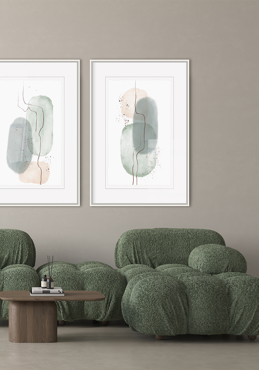 Diseño abstracto en acuarela con suaves tonos pastel de azul y verde combinados con líneas sutiles. Crea una estética moderna y minimalista perfecta para proyectos de diseño y decoración de interiores.