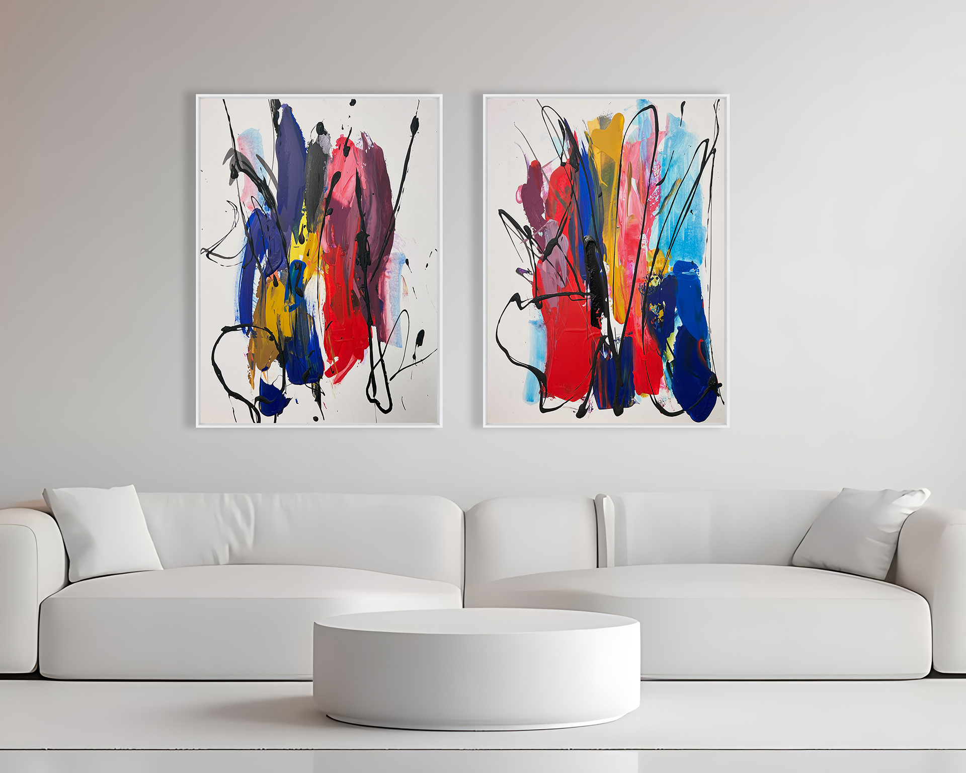 Obra abstracta de gran impacto visual, caracterizada por una vibrante explosi¢n de colores intensos como el azul, fucsia y amarillo, contrastados con trazos negros din micos. Una pieza art¡stica que aporta energ¡a y un toque contempor neo audaz a cualquier ambiente. Ideal para espacios que buscan un punto focal lleno de vida.