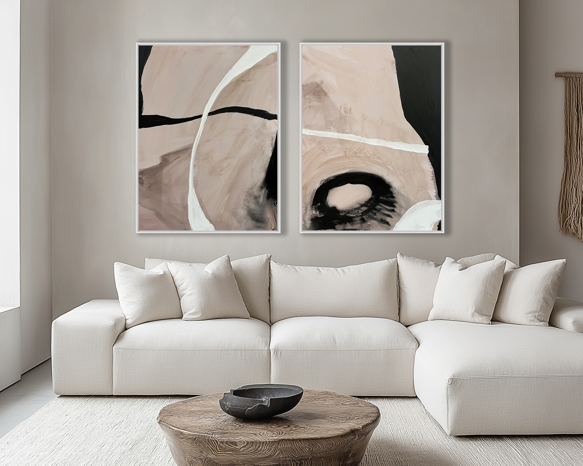 Cuadro abstracto en tonos arena y formas org nicas. Una propuesta de arte contempor neo que refuerza la serenidad del espacio y encaja perfectamente en viviendas modernas y proyectos de interiorismo actual.