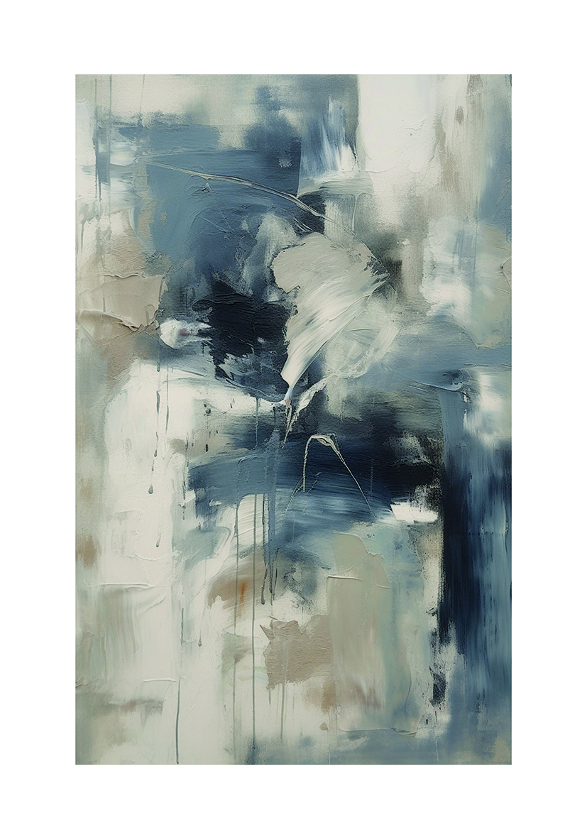 Pintura abstracta con mezcla de tonos azul, beige y blanco, pinceladas fluidas y texturas suaves. Ideal para aportar elegancia contemporánea a cualquier espacio.