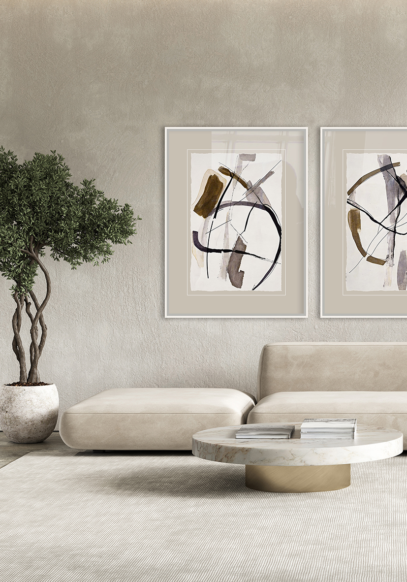 Arte abstracto contemporáneo con líneas dinámicas y tonos neutros, ideal para interiores modernos. Aporta creatividad y elegancia a espacios minimalistas o con inspiración artística.