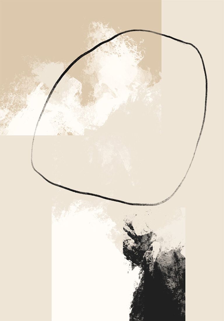 Lámina abstracta minimalista con líneas orgánicas y una paleta cálida en tonos beige. Transmite calma y equilibrio, siendo perfecta para espacios contemporáneos de estilo natural o minimal.